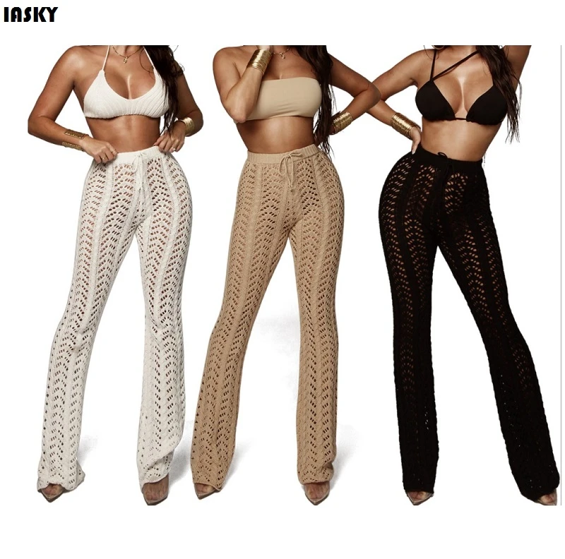 Iasky Crochet Bikini Cover Up Pants 2018 Women Hollow Out Long Beach Pants Trousers Swimsuit Bathing Suit Cover Ups Beachwearcover-up - Aliexpress