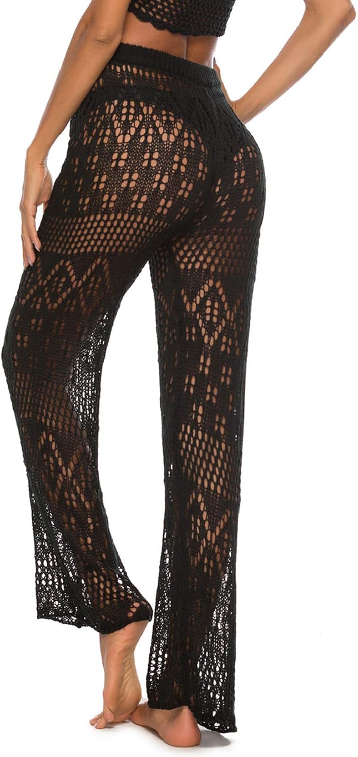 Ayliss Women Crochet Lace Swim Pants Knitted Hollow Out Cover Up Pants High Waist Fishnet Swimsuit Beach Pantsblack At Amazon Womens Clothing Store