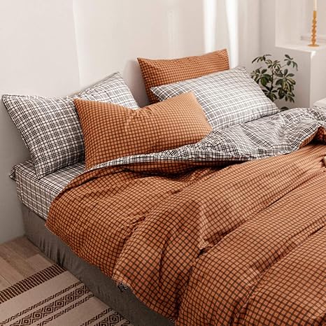 Amazoncom Orange Brown Plaid Duvet Cover Queen Geometric Grid Bedding Set Pumpkin Color Plaid Comforter Cover Modern Soft Cotton Bedding Duvet Cover With 2 Pillowcases Checkered Bedding Set For Men Women